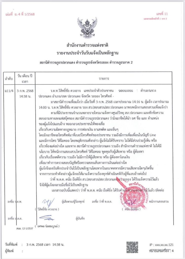 📣📣📣ระวัง !! ปลอม เป็นเจ้าหน้าที่ตำรวจ สภ ปลวกแดง