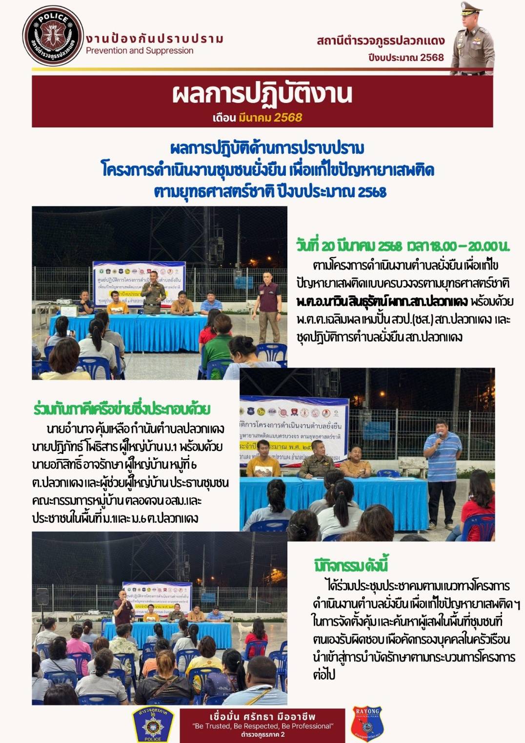 ผลการปฏิบัติด้านการปราบปราม โครงการดำเนินงานชุมชนยั่งยืน เพื่อแก้ไขปัญหายาเสพติด ตามยุทธศาสตร์ชาติ ปึงบประมาณ 2568