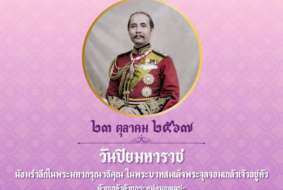๒๓ ตุลาคม ๒๕๖๗ วันปิยมหาราช 23 ตุลาคม 2567 โดย admin / ประชาสัมพันธ์ ๒๓ ตุลาคม ๒๕๖๗วันปิยมหาราชน้อมรำลึกในพระมหากรุณาธิคุณพระบาทสมเด็จพระจุลจอมเกล้าเจ้าอยู่หัวรัชกาลที่ ๕ด้วยเกล้าด้วยกระหม่อมขอเดชะ ข้าพระพุทธเจ้าข้าราชการตำรวจตำรวจภูธรภาค ๒#วันปิยมหาราช #รัชกาลที่5 #น้อมรำลึกในพระมหากรุณาธิคุณ #23ตุลาคมดูน้อยลง FacebookFacebookXXLINELine
