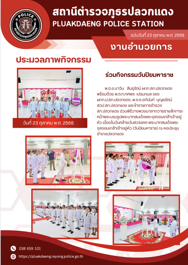 23 ตุลาคม วันปิยะมหาราช 23 ตุลาคม 2568 โดย admin / กิจกรรมทั่วไป,งานอำนวยการ,งาน อก. (ต.ค.68),ประชาสัมพันธ์ FacebookFacebookXXLINELine