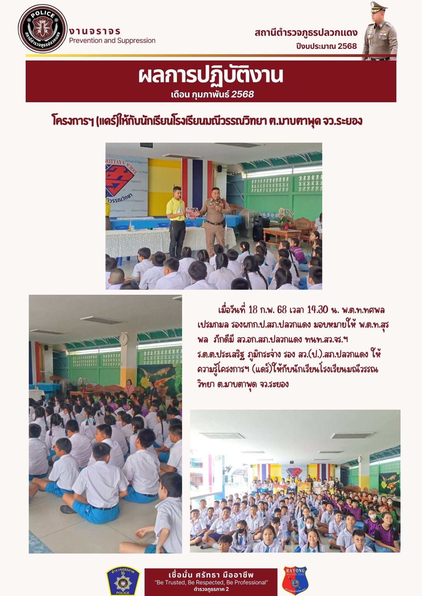 โครงการฯ (แดร์)ให้กับนักเรียนโรงเรียนมณีวรรณวิทยา ต.มาบตาพุด จว.ระยอง
