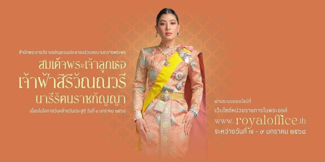 ๘ มกราคม ๒๕๖๘ ร่วมลงนามถวายพระพร สมเด็จพระเจ้าลูกเธอ เจ้าฟ้าสิริวัณณวรี นารีรัตนราชกัญญา เนื่องในโอกาสวันคล้ายวันประสูติ