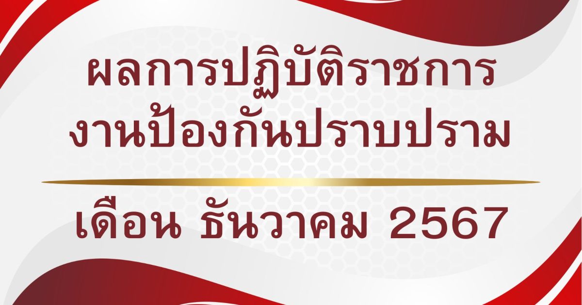 ผลการปฏิบัติราชการป้องกันปราบปราม 30 ธันวาคม 2567 โดย admin / กิจกรรมทั่วไป,งานป้องกันปราบปราม,งาน ป.(ธ.ค.67),ประชาสัมพันธ์ 2567-ธันวาคม ผลการปฏิบัติงานป้องกันปราบปราม โดย สถานีตํารวจภูธร ปลวกแดง FacebookFacebookXXLINELine