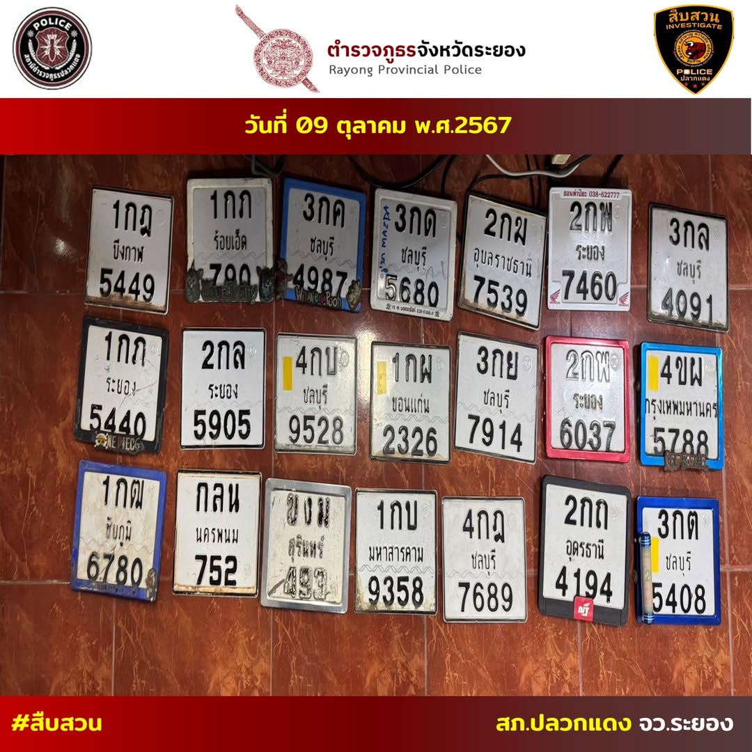 ประชาสัมพันธ์ให้เจ้าของแผ่นป้ายหมายเลขทะเบียนตามภาพติดต่อกลับที่ งานสืบสวน สภ.ปลวกแดง