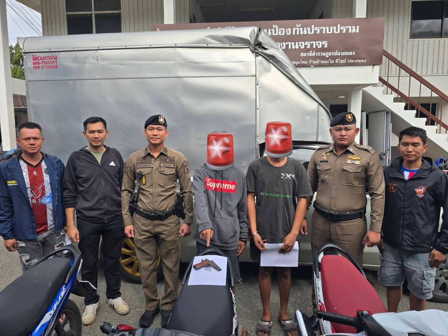 ชุดสืบสวนปลวกแดง-ชุด ป.พิเศษ ได้ร่วมกันจับกุมแก๊งโจรกรรม รถจักรยานยนต์ในพื้นที่ สภ.ปลวกแดง ผู้ต้องหา